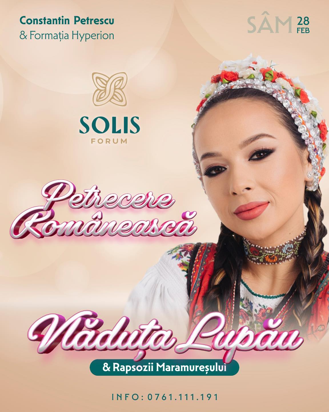 Complexul Solis Forum din Rediu va fi gazda unei petreceri de excepție pe 28 februarie, când Vlăduța Lupău și Rapsozii Maramureșului vor încânta publicul. Evenimentul promite să fie o adevărată sărbătoare a folclorului românesc, conform botosaninews.ro.